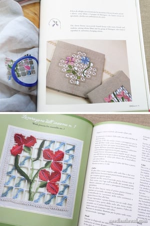 Herbarium is the 9th volume written by Giuliana Buonpadre, incorporating reticello techniques with some freestyle embroidery, to create beautiful Italian needle lace that combines classical techniques with a modern spin.