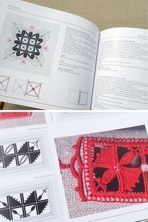 In this volume, Giuliana explores colored reticello designs in a somewhat less complex level compared to her previous two volumes (Vol 6 & 7), which makes this book an excellent companion to Vol 3 Il Reticello and Vol 5 Fior di Reticello.